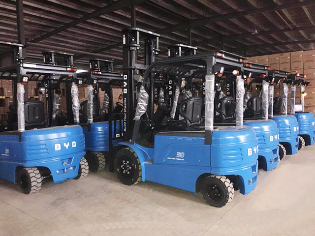 第一,比亞迪叉車(chē)為南昌基地提供近百臺(tái)平衡重式叉車(chē);