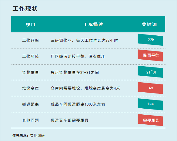 在貨物搬運(yùn)中,該基地整體工況主要特點(diǎn)是工作時間長、貨物重、搬運(yùn)距離長: