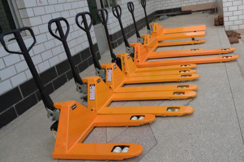3.1、手動液壓搬運車必須完全放入墊板下面,將貨物叉起,保持貨物的平整后才能進(jìn)行拉運動作。