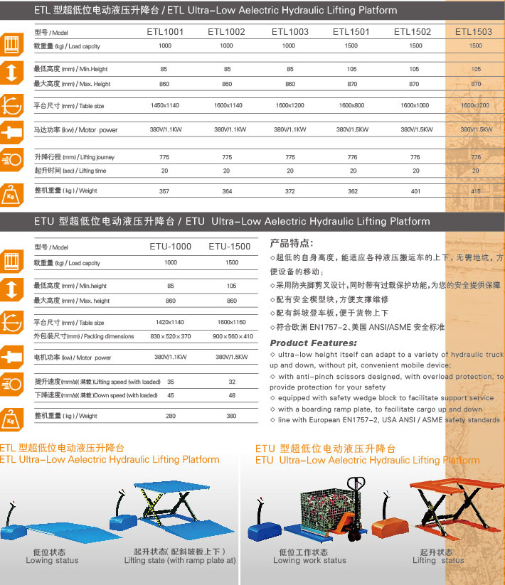 超低的自身高度,能適應各種液壓搬運車的上下,無需地坑,方便設(shè)備的移動;